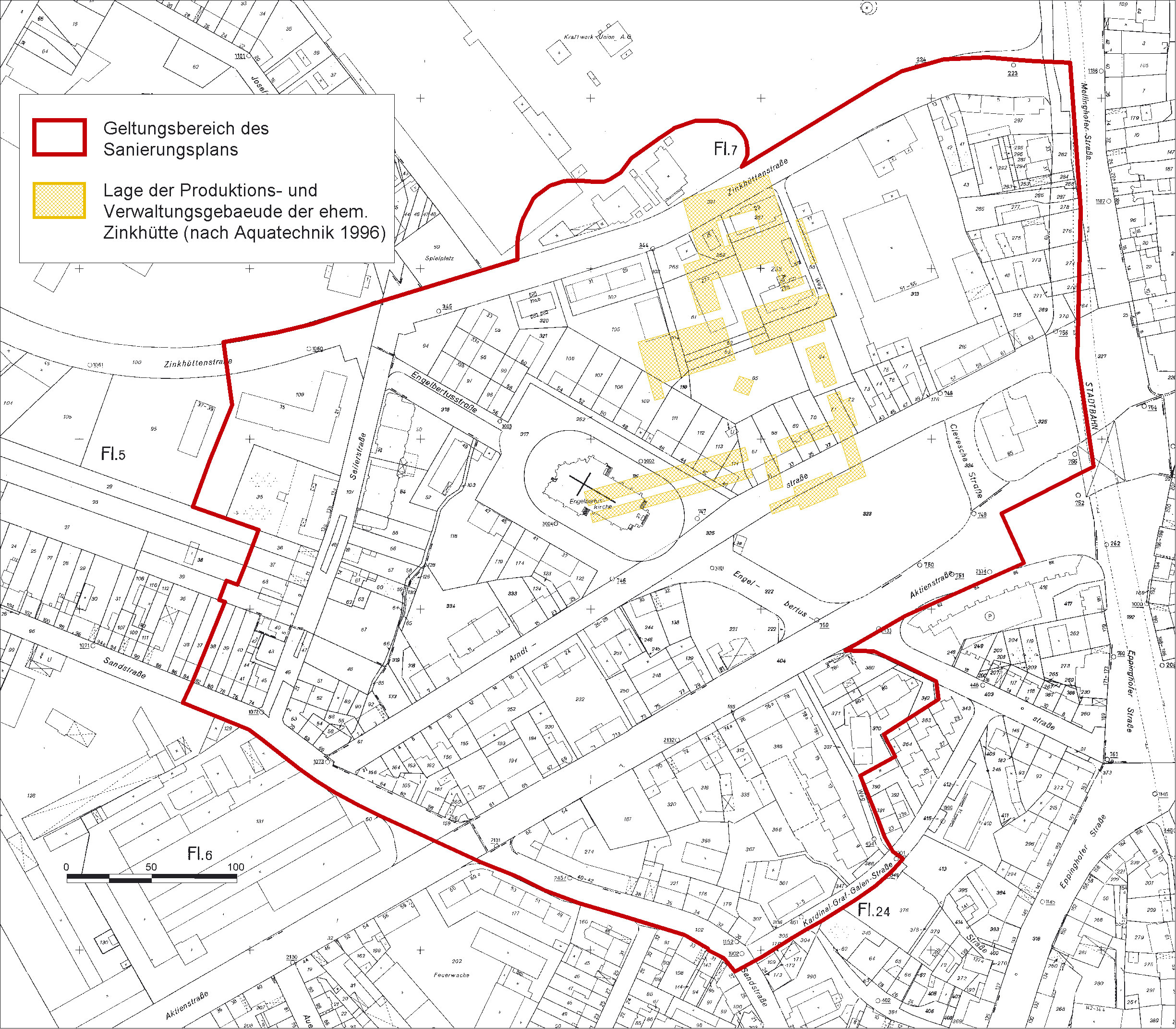 Übersicht über das Gebiet und den Standort der ehemaligen Zinkhütte: